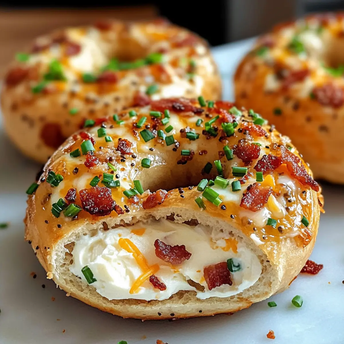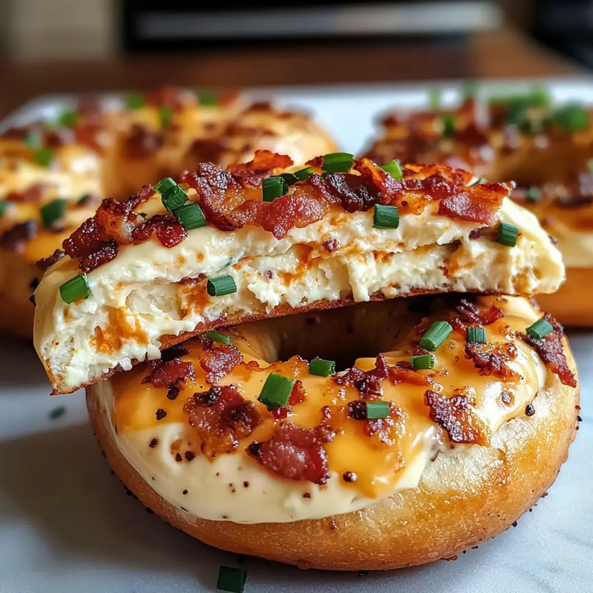 Kürzlich saß ich in meinem Lieblingscafé, der Duft von frisch gebackenem Brot umhüllte mich und weckte Erinnerungen an ein unbeschwertes Frühstück. Was könnte besser sein, als mit einem selbstgemachten, warmen Bagel zu starten? Diese Würzige Speck-Frischkäse-Bagels sind die perfekte Lösung, wenn man sich nach etwas Deftigem und Herzhaftem sehnt. Das Beste daran? Diese Bagels sind nicht nur ein wahres Fest für die Sinne, sondern auch unglaublich einfach zuzubereiten – ideal für alle, die die Hektik des Alltags hinter sich lassen möchten. Mit der Kombination aus knusprigem Speck, cremigem Frischkäse und der Möglichkeit, verschiedene Bageltypen zu verwenden, sind sie die perfekte Wahl für ein köstliches Frühstück oder einen Snack. Bist du bereit, deine Frühstücksroutine aufzupeppen? Warum wirst du dieses Rezept lieben? Einfachheit pur: Die Zubereitung dieser würzigen Speck-Frischkäse-Bagels ist denkbar einfach und erfordert keine speziellen Kochkünste. Reichhaltiger Geschmack: Die Kombination aus cremigem Frischkäse und knusprigem Speck sorgt für ein unvergleichliches Geschmackserlebnis, das den Gaumen verwöhnt. Vielseitigkeit: Egal ob mit einem klassischen Bagel oder einer speziellen Sorte wie Sesam oder Zwiebel, du kannst diese Bagels ganz nach deinem Geschmack anpassen. Perfekte Texturen: Der Kontrast zwischen dem knackigen Bacon und der samtigen Creme macht jeden Bissen zu einem Genuss, der die Sinne verzaubert. Köstlicher Komfort: Diese Bagels sind die ideale Wahl für alle, die sich nach einem herzhaften Frühstück sehnen und gleichzeitig die Vorzüge eines hausgemachten Snacks genießen möchten. Schnell zubereitet: In weniger als 30 Minuten sind sie fertig, was sie perfekt für hektische Morgen macht. Warum nicht auch deine Familie mit diesen köstlichen Bagels verwöhnen? Würzige Speck-Frischkäse-Bagels Zutaten Für die Bagels • Bagels – Verwende frische, dichte Bagels für optimale Ergebnisse; sie sorgen für den perfekten Biss. Für die Füllung • Frischkäse – Dieser sorgt für eine reichhaltige, cremige Basis; du kannst zwischen normalem, fettarmem oder geschlagenem Frischkäse wählen. • Geriebener Cheddar-Käse – Er fügt Geschmack und Textur hinzu; andere schmelzbare Käsesorten sind ebenfalls möglich. • Gekochter Speck – Bringt die knusprige, herzhafte Note; achte darauf, den Speck abkühlen zu lassen, um den Frischkäse nicht zu schmelzen. • Mayonnaise – Fügt der Füllung Cremigkeit hinzu; griechischer Joghurt ist eine leichtere Alternative. • Sauerrahm – Verstärkt die Cremigkeit; kann durch zusätzlichen Frischkäse ersetzt werden. • Chili-Sauce (optional) – Für eine pikante Note; weglassen für eine mildere Variante. • Salz und Pfeffer – Zum Würzen; nach Geschmack anpassen. Entdecke den unwiderstehlichen Geschmack dieser Würzige Speck-Frischkäse-Bagels und lass dich von den Variationen inspirieren! Schritt-für-Schritt-Anleitung für Würzige Speck-Frischkäse-Bagels Step 1: Füllung vorbereiten In einer Schüssel alle Zutaten für die Füllung kombinieren: Frischkäse, geriebenen Cheddar, gewürfelten, abgekühlten Speck, Mayonnaise, Sauerrahm und optional die Chili-Sauce. Mit einem Handmixer oder Löffel gut vermengen, bis die Mischung cremig und gleichmäßig ist. Achte darauf, nicht zu übermixen. Lass die Füllung für 30 Minuten im Kühlschrank ruhen, damit sie fester wird. Step 2: Bagels vorbereiten Halbiere die Bagels, indem du einen dünnen Schnitt an der Unterseite machst, während die obere Seite mit den Saaten intakt bleibt. Nimm einen kleinen Löffel oder ein Messer und höhle die Mitte der Bagels vorsichtig aus. Achte darauf, nicht durchzuschneiden, sodass die Füllung später gut darin hält. Die Bagels sollten leicht knusprig und goldbraun sein. Step 3: Bagels füllen Nimm die gekühlte Füllung aus dem Kühlschrank und fülle jede Bagelhälfte gleichmäßig auf. Verwende einen Spachtel oder einen Löffel, um die Füllung glatt in die hohlen Bagels zu verteilen. Über die Füllung kannst du reservierten gekochten Speck und nach Belieben gehackte Chives streuen, um zusätzlichen Geschmack und eine schöne Präsentation zu erzielen. Step 4: Backen Lege die gefüllten Bagels auf ein mit Backpapier ausgelegtes Blech. Heize den Ofen auf 190 °C vor. Backe die Bagels für 12 bis 15 Minuten, bis die Oberseite goldbraun ist und der Käse anfängt zu blubbern. Halte ein Auge auf sie, damit sie nicht zu dunkel werden und die perfekte Konsistenz erhalten. Step 5: Servieren Nimm die Bagels aus dem Ofen und lasse sie kurz abkühlen, bevor du sie servierst. Genieße die Würzige Speck-Frischkäse-Bagels sofort, wenn sie noch heiß sind, um das köstliche Aroma und die cremige Textur optimal zu erleben. Für einen zusätzlichen Kick kannst du die Bagels mit frischen Chives garnieren. Aufbewahrungstipps für Würzige Speck-Frischkäse-Bagels Kühlschrank: Die gefüllten Bagels sollten in einem luftdichten Behälter im Kühlschrank aufbewahrt werden und sind für bis zu 3 Tage genießbar. Tiefkühler: Du kannst die gefüllten Bagels vor dem Backen einfrieren. Wickele sie gut in Frischhaltefolie ein und lagere sie bis zu 2 Monate. Auftauen: Zum Auftauen die gefrorenen Bagels einfach über Nacht im Kühlschrank lagern oder direkt bei Raumtemperatur auftauen lassen. Die Füllung sollte danach gut gekühlt sein. Aufwärmen: Bei 180 °C für etwa 10 Minuten aufbacken, bis sie warm sind und die Füllung wieder cremig wird. Der Geschmack der Würzigen Speck-Frischkäse-Bagels bleibt so wunderbar erhalten. Expert Tipps für Würzige Speck-Frischkäse-Bagels Bacon abkühlen lassen: Achte darauf, dass der gekochte Speck vollständig abgekühlt ist, bevor du ihn zur Füllung gibst, um das Schmelzen des Frischkäses zu vermeiden. Bagels leicht rösten: Röste die Bagels leicht, um eine optimale Textur zu erreichen. Dies hilft, sie knusprig und warm zu halten. Nicht übermixen: Übermische die Frischkäsemischung 