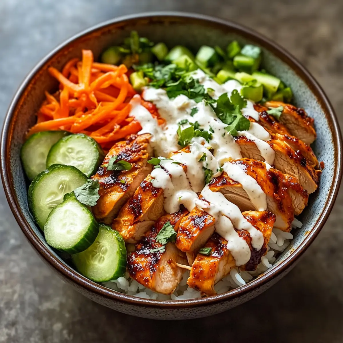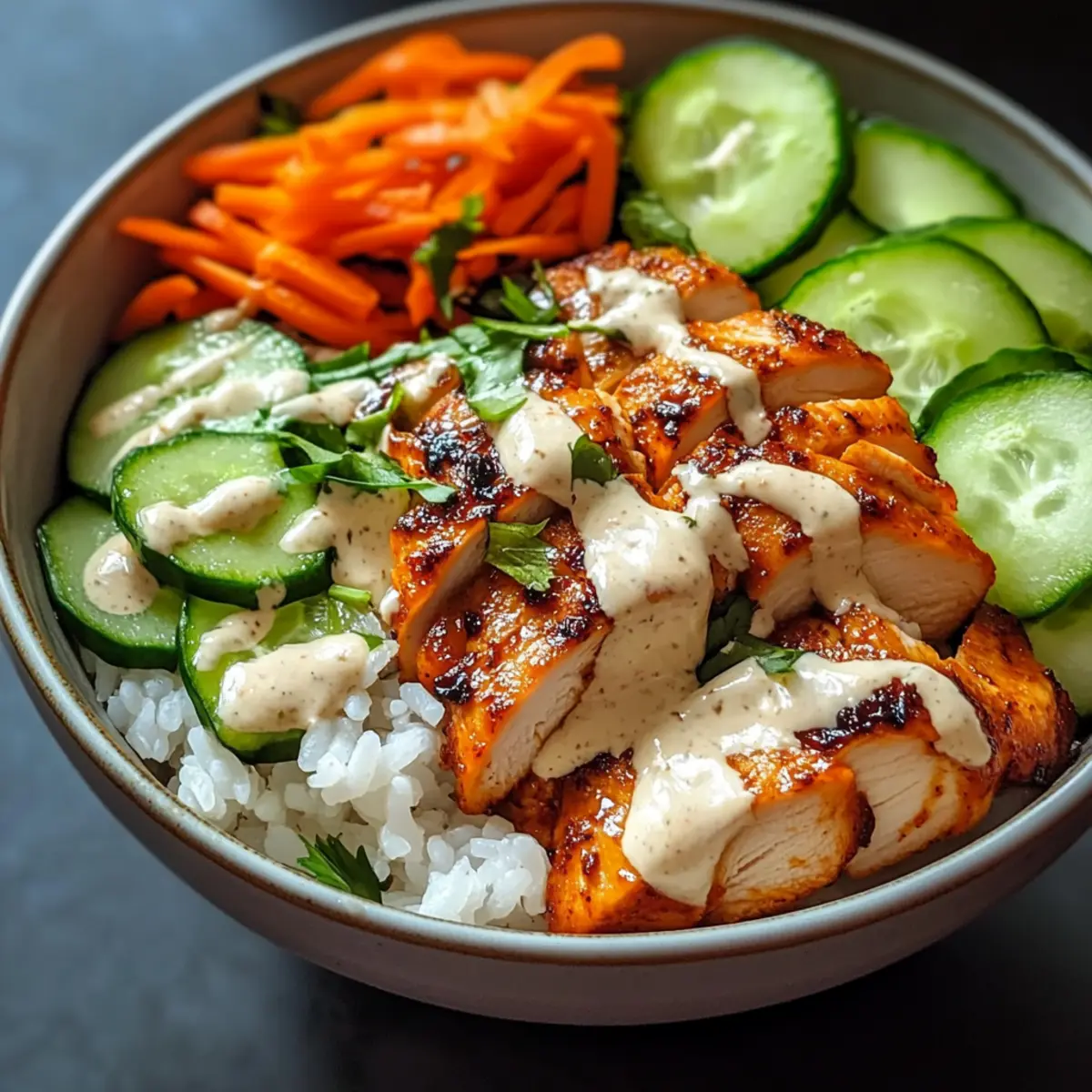 Spicy chicken bowl with creamy sauce for a flavor experience