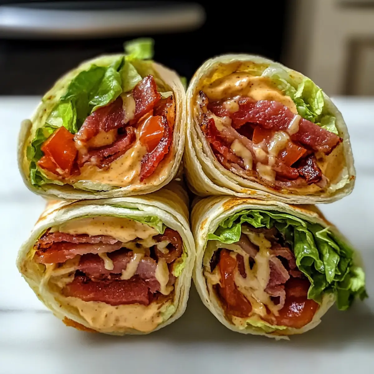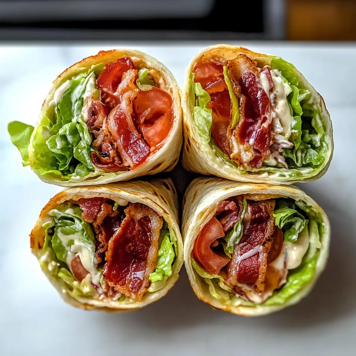 Es war an einem dieser hektischen Tage, an denen man einfach keine Lust hat, stundenlang in der Küche zu stehen. Genau in solchen Momenten erinnere ich mich an meine Zesty BLT Wraps mit Chipotle Mayo – eine köstliche, unkomplizierte Variante des beliebten BLT-Sandwiches. Diese Wraps vereinen das Knusprige des Specks, die Frische des Salats und die Saftigkeit der Tomaten in einer weichen Tortilla. Schnell zubereitet und perfekt zum Mitnehmen, sind sie die ideale Lösung für ein schnelles Abendessen oder ein Picknick im Freien. Und das Beste? Die cremige Chipotle-Mayo gibt jedem Bissen eine angenehm würzige Note. Welche Variante möchtest du ausprobieren – ganz klassisch oder mit einem kreativen Twist? Warum wirst du dieses Rezept lieben? Schnelle Zubereitung: In nur wenigen Minuten bringst du diese Wraps auf den Tisch – ideal für stressige Tage und spontane Picknicks! Vielseitigkeit: Du kannst die Zutaten je nach Geschmack anpassen, sei es mit Hähnchen, Gemüse oder verschiedenen Käsesorten. Würziger Kick: Die Chipotle-Mayo verleiht jedem Bissen eine aufregende Schärfe, die deine Geschmacksknospen erfreuen wird. Perfekt zum Mitnehmen: Diese Wraps sind leicht zu transportieren und schmecken sowohl warm als auch kalt. Bring sie mit zu deiner nächsten Grillparty oder im Büro mit! Lieblingsgericht für alle: Sogar die, die Fast Food lieben, werden von diesem gesunden und herzhaften Rezept begeistert sein – ein echter Publikumsliebling! Zesty BLT Wraps mit Chipotle Mayo Zutaten • Dieses Rezept wird dich begeistern! Für den Wrap Bacon – sorgt für den unverwechselbaren, herzhaften Geschmack; verwende regulären oder dicken Speck für mehr Biss. Tortillas – die perfekte Grundlage für deinen Wrap; weiche Mehl-Tortillas sind ideal, aber auch Mais-Tortillas funktionieren gut. Salat – bringt Frische und Knackigkeit; wähle Eisbergsalat oder Römersalat für die beste Textur. Tomaten – sorgen für Saftigkeit; nutze frische, reife Tomaten und tupfe sie trocken, um ein Durchweichen zu vermeiden. Cheddar-Käse – fügt Cremigkeit hinzu; kann durch andere Käsesorten wie Swiss oder Pepper Jack ersetzt werden. Chipotle-Mayo – bringt die pikante Note; selbstgemacht (Mayo mit Chipotle in Adobo mischen) oder aus dem Laden sind beide köstlich. Optionales Zubehör Beilagen – Kartoffelchips, Pommes, Nudelsalat oder frisches Obst passen perfekt zu diesen Wraps und runden dein Essen ab. Schritt-für-Schritt-Anleitung für Zesty BLT Wraps mit Chipotle Mayo Step 1: Speck braten Erhitze eine große Pfanne bei mittlerer bis hoher Temperatur und füge den Bacon hinzu. Brate den Speck 6–8 Minuten lang, bis er knusprig ist und eine goldbraune Farbe annimmt. Lege den gebratenen Speck anschließend auf ein Papiertuch, um überschüssiges Fett abtropfen zu lassen, und lasse ihn kurz abkühlen. Step 2: Tortillas vorbereiten Lege die Tortillas auf einen mikrowellengeeigneten Teller und verteile den Cheddar-Käse gleichmäßig darauf. Erwärme die Tortillas in der Mikrowelle für 1–2 Minuten, bis der Käse geschmolzen und die Tortillas warm und biegsam sind. Dies macht es einfacher, die Wraps zu rollen und sorgt für zusätzlichen Geschmack. Step 3: Wraps zusammenstellen Lege die warmen Tortillas mit Käse auf eine saubere Arbeitsfläche. Verteile jeweils einige Scheiben knusprigen Speck, frischen Salat und saftige Tomaten gleichmäßig auf die Tortillas. Achte darauf, die Füllung nicht zu überladen, damit die Wraps beim Rollen nicht zerreißen. Step 4: Wraps aufrollen Beginne am unteren Ende der Tortilla und rolle sie fest auf, so dass die Füllung gut eingewickelt ist. Drücke die Enden leicht zusammen, um ein Auslaufen zu verhindern. Sichern die Wraps bei Bedarf mit Zahnstocher oder wickele sie in Backpapier, um sie für den Transport zusammenzuhalten. Step 5: Wraps schneiden und servieren Schneide die fertigen Wraps diagonal in zwei Hälften, um ein ansprechendes Präsentation zu erreichen. Serviere die Zesty BLT Wraps mit Chipotle Mayo warm oder bei Zimmertemperatur, je nach Vorliebe. Sie sind perfekt für ein schnelles Abendessen oder ein Picknick und lassen sich gut mit knusprigen Beilagen kombinieren. Was passt gut zu Zesty BLT Wraps mit Chipotle Mayo? Genieße die Aromen dieser köstlichen Wraps und entdecke die perfekten Begleiter, die dein Essen abrunden. Crispy Potato Chips: Ergänze die Wraps mit knusprigen Kartoffelchips für den perfekten Crunch und einen herzhaften Snack, der einfach unwiderstehlich ist. Sie bringen ein tolles Kontrastgefühl zur sanften Textur der Wraps. Fresh Fruit Salad: Ein bunter Obstsalat sorgt für eine erfrischende Süße und belebt die Geschmacksnerven. Perfekt, um die würzigen Aromen der Chipotle Mayo auszugleichen! Creamy Pasta Salad: Ein leichter, cremiger Nudelsalat funkelt in der Sonne und bietet eine köstliche Ergänzung, die sowohl sättigend als auch erfrischend ist. Ideal für Picknicks oder Grillabende! Iced Tea or Lemonade: Ein kühles Glas Eistee oder Zitronenlimonade bringt den Sommer auf den Tisch und harmoniert wunderbar mit den würzigen Wraps. Erfrischend und perfekt, um den Gaumen zu reinigen! Grilled Corn on the Cob: Gegrillter Mais, mit Butter und Gewürzen verfeinert, bietet einen süßen, rauchigen Geschmack, der die Aromen der Wraps ideal ergänzt. Jeder Biss ist ein feuriges Vergnügen! Chocolate Chip Cookies: Zum Abschluss runden schokoladige Kekse das Essen perfekt ab. Ein süßer, klassischer Snack, der immer gut ankommt und für die Kleinen und Großen gleichsam ein Hit ist. Tipps für die besten Zesty BLT Wraps Speck richtig braten: Achte darauf, den Speck bei mittlerer bis hoher Hitze zu braten, damit er schön knusprig wird. Zu niedrige Hitze kann das Fett nicht richtig auslassen. Tortillas warmhalten: Erwärme die Tortillas vor dem Füllen, um sie biegsamer zu machen. Kalte Tortillas können reißen, wenn du sie rollen möchtest. Füllmenge beachten: Vermeide es, die Wraps zu überladen; eine viertel Tasse de
