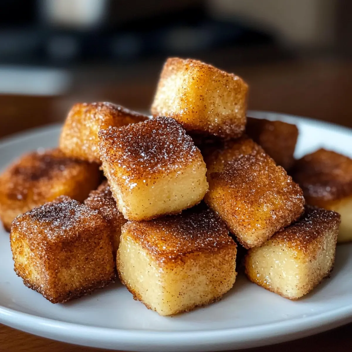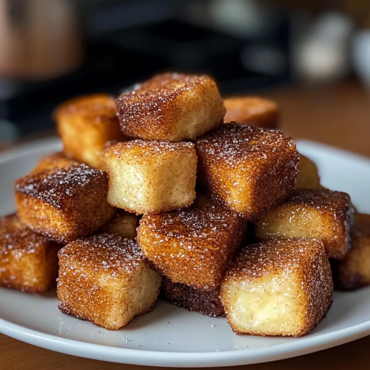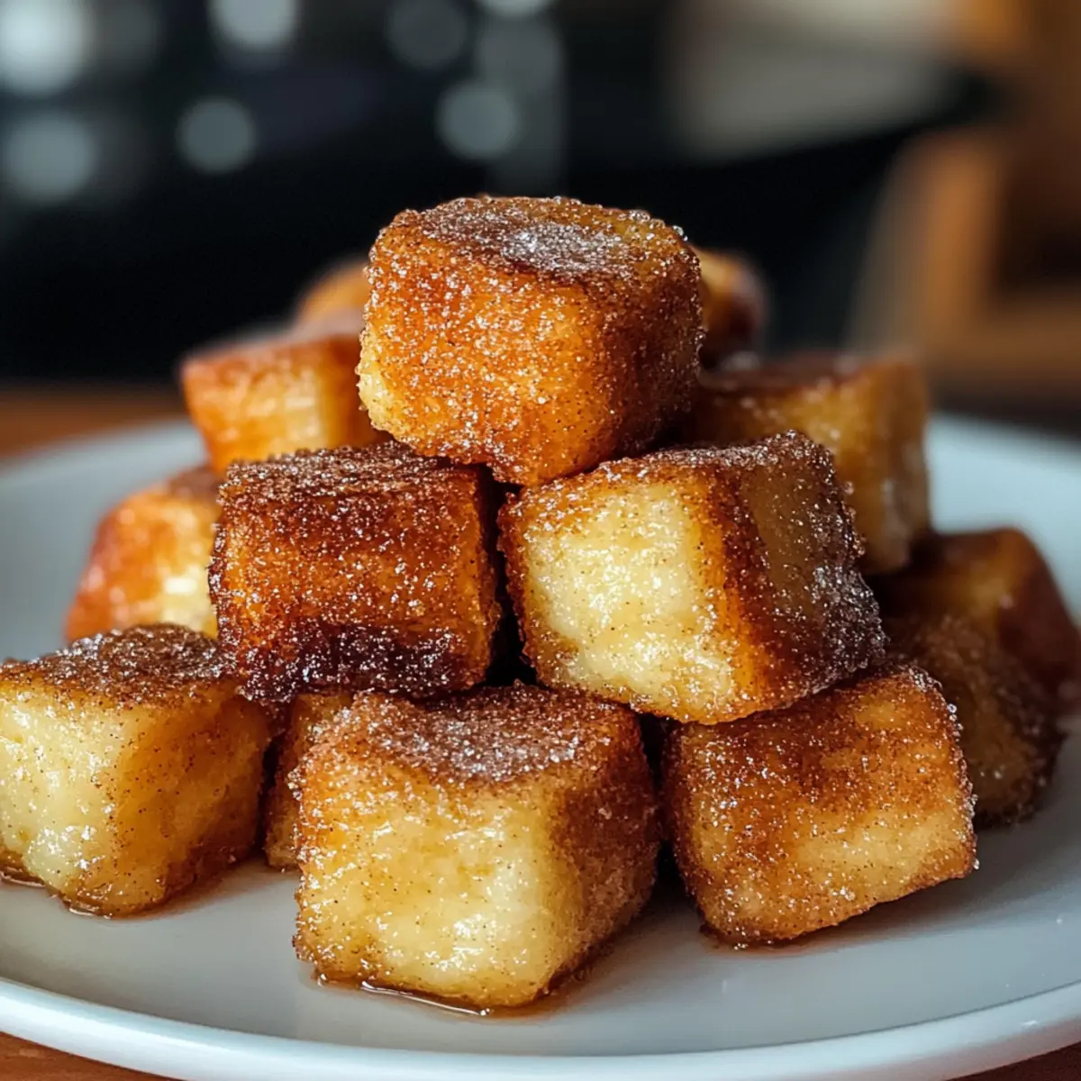 „Könnte ich schon wieder etwas Süßes verdrücken?“ fragte meine Freundin am Sonntagmorgen, während wir in der Küche standen. Ihre Frage erinnerte mich an ein Rezept, das ich einfach ausprobieren musste: Zimt Französische Toast Bissen! Diese kleinen, goldbraunen Würfel sind nicht nur kinderleicht zuzubereiten, sondern bringen auch den Geschmack von Zimtschnecken in einem praktischen, mundgerechten Format auf den Tisch – perfekt für einen schnellen Frühstücksgenuss oder die nächste Brunch-Party. Das Beste daran? Sie sind, ebenso wie meine Freundschaft mit ihr, immer ein Hit! Mit nur wenigen Zutaten könnt ihr eine köstliche Mischung aus knusprigem Äußeren und fluffigem Inneren kreieren. Neugierig auf die Geheimnisse hinter diesem verführerischen Rezept? Lass uns gemeinsam eintauchen! Warum wirst du diese Bissen lieben? Köstliche Einfachheit: Die Zubereitung ist denkbar einfach und benötigt nur grundlegende Kochkünste, perfekt für jeden, der schnell etwas Leckeres zaubern möchte. Süßer Genuss: Diese Bissen vereinen die warmen Aromen von Zimt und Zucker, was sie unwiderstehlich und perfekt für Naschkatzen macht. Vielseitigkeit: Ob mit Schokoladensplittern, Kürbisgewürz oder warmen Äpfeln – die Variationen sind schier endlos und bieten für jeden Geschmack etwas. Schnell und praktisch: Ideal, wenn du Gäste bewirten möchtest oder einfach nur ein schnelles Frühstück benötigst. Die Bissen sind in wenigen Minuten fertig und lassen sich gut vorbereiten! Crowd-Pleaser: Egal, ob beim Brunch mit Freunden oder als süßer Snack für die Familie – diese Bissen sorgen immer für strahlende Gesichter und nach mehr verlangen. Wenn du nach weiteren köstlichen Rezepten suchst, schau dir auch unsere schnellen Frühstücksideen oder die leckersten Brunch-Rezepte an! Zimt Französische Toast Bissen Zutaten • Entdecke die geheimen Zutaten für das perfekte Frühstück! Für die Bissen Cubiertes Brot – sorgt für die Grundlage des Gerichts; am besten eignet sich altbackenes Brioche, Challah oder Französisches Brot für die optimale Textur. Eier – verleihen dem Teig Reichhaltigkeit und Stabilität. Milch – befeuchtet die Mischung und hebt das Geschmacksprofil; kann durch jede Art von Milch oder pflanzlicher Alternative ersetzt werden. Vanilleextrakt – verstärkt die Süße und die Geschmacksfülle; eine optionale, aber empfehlenswerte Zutat. Gemahlener Zimt – essentieller Bestandteil, der den charakteristischen Geschmack und die Wärme verleiht; unverzichtbar für die Zubereitung der Zimt Französische Toast Bissen. Zucker (Kristallzucker) – süßt die Mischung und wird mit Zimt zum Überziehen kombiniert. Salz – balanciert die Süße und hebt den Geschmack hervor. Butter – dient zum Braten; fügt Reichhaltigkeit hinzu und verhindert das Ankleben. Optional zum Servieren Puderzucker – für eine süße, dekorative Note. Ahornsirup – ergänzt die süßen Aromen perfekt. Schlagsahne – für eine cremige Textur. Obst – frische Beeren oder andere Früchte sorgen für einen fruchtigen Akzent. Mit diesen einfachen Zutaten zauberst du eine köstliche Variante der Zimt Französische Toast Bissen und wirst sicher viele begeistern! Schritt-für-Schritt-Anleitung für Zimt Französische Toast Bissen Step 1: Eier und Milch verquirlen In einer mittelgroßen Schüssel die Eier, Milch, Vanilleextrakt, gemahlenen Zimt, Zucker und Salz gründlich verquirlen, bis eine glatte Masse entsteht. Achte darauf, alle Zutaten gut zu vermengen, um eine gleichmäßige Textur zu erreichen. Dies bildet die Basis für die köstlichen Zimt Französische Toast Bissen. Step 2: Brotwürfel einweichen Die gewürfelten Brotstücke vorsichtig in die Ei-Mischung geben. Sanft durchmischen, damit jede Oberfläche des Brotes gut benetzt wird. Lasse die Mischung für 2–3 Minuten ruhen, damit das Brot die Flüssigkeit aufsaugt und schön weich wird. Dies sorgt für ein leichtes und fluffiges Inneres. Step 3: Butter erhitzen In einer großen Pfanne die Butter bei mittlerer Hitze erhitzen, bis sie anfängt zu schäumen. Achte darauf, die Temperatur nicht zu hoch zu wählen, um ein Anbrennen der Butter zu vermeiden. Die heiße Butter sorgt dafür, dass die Zimt Französische Toast Bissen eine goldbraune und knusprige Kruste erhalten. Step 4: Brotwürfel braten Die eingeweichten Brotstücke in einer einzigen Schicht in die Pfanne legen. Etwa 2–3 Minuten auf jeder Seite braten, bis sie schön goldbraun und knusprig sind. Wenden Sie die Bissen vorsichtig mit einem Spatel, um ein Zerbrechen zu vermeiden und eine gleichmäßige Bräunung zu erreichen. Step 5: Zimt-Zucker-Mischung herstellen In einer kleinen Schüssel Zucker und gemahlenen Zimt gut vermengen. Diese Mischung wird verwendet, um die warmen, frisch gebratenen Zimt Französische Toast Bissen zu überziehen und einen köstlichen, süßen Geschmack zu verleihen. Halte die Mischung bereit, während die Bissen auf dem Herd bräunen. Step 6: Bissen im Zimt-Zucker wälzen Sobald die Brotstücke fertig gebraten sind, sofort in der Zimt-Zucker-Mischung wälzen, solange sie noch warm sind. Das macht die Zimt Französische Toast Bissen besonders aromatisch und sorgt dafür, dass der Zuckergeschmack perfekt anhaftet. Achte darauf, jedes Stück gründlich zu umhüllen, um ein gleichmäßiges Ergebnis zu erzielen. Step 7: Sofort servieren Die Zimt Französische Toast Bissen warm servieren und nach Belieben mit Puderzucker, Ahornsirup, Schlagsahne oder frischen Früchten garnieren. Diese Bissen sind bei jeder Gelegenheit ein Hit und schmecken am besten frisch zubereitet. Wähle deine Lieblings-Toppings und genieße den herrlichen Geschmack! Zubereitung im Voraus für Zimt Französische Toast Bissen Die Zimt Französische Toast Bissen sind ideal für die Vorbereitung im Voraus! Du kannst die Brotwürfel bis zu 24 Stunden zuvor in die Ei-Mischung einweichen und im Kühlschrank aufbewahren, um die Aromen zu intensivieren. Alternativ können die fertige