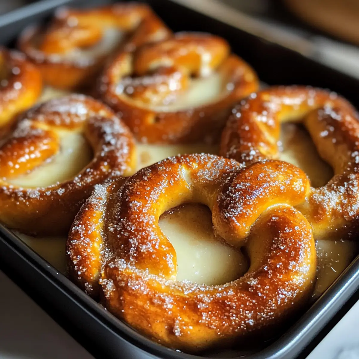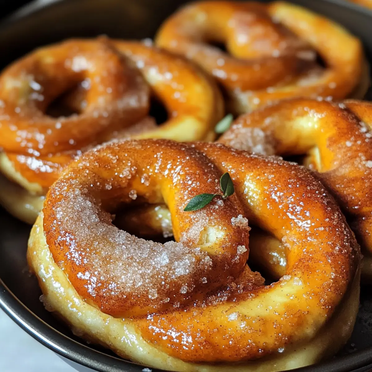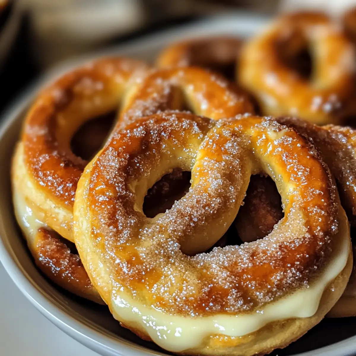 Als ich das erste Mal den Duft von frisch gebackenen Zimt Zucker Weichen Brezeln in meiner Küche erlebte, wusste ich sofort, dass ich in eine neue kulinarische Leidenschaft eintauchen musste. Diese köstlichen, warmen Brezeln, die mit einer süßen Zimt-Zucker-Mischung überzogen sind, sind nicht nur einfach zuzubereiten, sondern auch ein wahrer Gaumenschmaus für jeden Anlass. Egal, ob du sie zu einem gemütlichen Filmabend mit Freunden bringst oder dir einfach selbst eine Freude machst, dieser klassische Snack vereint das Beste aus salzig und süß und sorgt für ein wohltuendes Gefühl. Mit nur wenigen Zutaten und in kurzer Zeit zauberst du ein liebevolles Rezept, das dich und deine Liebsten in den Brezel-Himmel katapultiert. Bist du bereit, deine Küche in eine duftende Backstube zu verwandeln? Lass uns loslegen! Warum wirst du dieses Rezept lieben? Einfachheit, die begeistert: Der gesamte Prozess ist unkompliziert und erfordert nur grundlegende Backfähigkeiten. Wohlschmeckende Kombination: Die Mischung aus Zimt und Zucker verleiht den Brezeln einen unwiderstehlichen, süßen Geschmack, der niemanden kalt lässt. Perfekter Snack: Diese Zimt Zucker Weichen Brezeln sind ideal für Partys oder gemütliche Abende – sie werden garantiert als Hit gefeiert! Vielseitigkeit: Du kannst sie nach Belieben anpassen, zum Beispiel mit einem köstlichen Schokoladenguss oder warmem Karamell zum Dippen. Schnelle Zubereitung: In weniger als 2 Stunden kannst du diese Leckerei selbst kreieren, perfekt für spontane Backaktionen! Jede Biss ist ein wahres Geschmackserlebnis, das dich und deine Liebsten begeistern wird! Zimt Zucker Weiche Brezeln Zutaten • Für alle, die den süßen Genuss lieben! Für den Teig Aktive Trockenhefe – sorgt für das Aufgehen des Teigs und eine wunderbar weiche Textur. Warmes Wasser – aktiviert die Hefe; achte darauf, dass es nur leicht warm ist, um die Hefe nicht zu töten. Zucker – fügt dem Teig Süße hinzu und nährt die Hefe für optimalen Auftrieb. Weißes Mehl – gibt Struktur und sorgt für das typische Kaubgefühl der Brezeln. Salz – verstärkt den Geschmack und balanciert die Süße aus. Ungesalzene Butter (geschmolzen) – verleiht den Brezeln einen reichen Geschmack und eine zarte Textur. Backsoda – verwendet für das Wasserbad, um eine leckere und goldbraune Kruste zu erreichen. Großes Ei (verquirlt) – dient zum Bestreichen der Brezeln und verleiht ihnen einen glänzenden, goldenen Look. Für den Zimt-Zucker-Topping Zucker (zum Bestreuen) – sorgt für eine süße Kruste, die beim Backen perfekt karamellisiert. Gemahlener Zimt – gibt den Brezeln ein warmes, würziges Aroma, das den süßen Genuss perfekt ergänzt. Mit diesen Zutaten zauberst du köstliche Zimt Zucker Weiche Brezeln, die deine Geschmacksknospen verwöhnen werden! Schritt-für-Schritt-Anleitung für Zimt Zucker Weiche Brezeln Step 1: Hefe aktivieren Gieße 240 ml warmes Wasser in eine Schüssel und streue 10 g aktive Trockenhefe darüber. Rühre 15 g Zucker ein und lasse die Mischung 5-10 Minuten stehen, bis sie schaumig wird und duftet. Diese Basis sorgt für die leichte Textur der Zimt Zucker Weichen Brezeln. Step 2: Teig zubereiten In einer großen Rührschüssel vermenge 440 g Weißes Mehl und 5 g Salz. Gib dann die Hefe-Mischung und 30 g geschmolzene ungesalzene Butter hinzu. Rühre kräftig um, bis ein klebriger Teig entsteht, der sich von der Schüssel löst, und bereite dich auf das Kneten vor. Step 3: Teig kneten Streue etwas Mehl auf eine saubere Arbeitsfläche und kippe den Teig darauf. Knete ihn 5-7 Minuten lang, bis er glatt und elastisch ist. Achte darauf, den Teig nicht zu viel zu kneten, um eine zarte Konsistenz für die Zimt Zucker Weichen Brezeln zu bewahren. Step 4: Teig gehen lassen Legen den gekneteten Teig in eine leicht geölte Schüssel und decke sie mit einem feuchten Tuch ab. Lass den Teig an einem warmen Ort für 1 bis 1,5 Stunden gehen, bis sich sein Volumen verdoppelt hat. Dies ist entscheidend für die luftige Textur der Brezeln. Step 5: Teig teilen und formen Sobald der Teig aufgegangen ist, drücke ihn leicht zusammen und teile ihn in 8 gleich große Stücke. Rolle jedes Stück zu einem etwa 45 cm langen Strang und forme diesen zu einer Brezeln. Achte darauf, die Enden gut zusammenzudrücken, damit die Form stabil bleibt. Step 6: Wasserbad vorbereiten Heize den Ofen auf 190°C vor. In einem großen Topf bringe 2,5 Liter Wasser zum Kochen und füge 60 g Backpulver hinzu. Dieses Wasserbad verleiht den Zimt Zucker Weichen Brezeln ihre charakteristische knusprige Kruste und die schöne Farbe. Step 7: Brezeln im Wasserbad kochen Koche jede Brezel einzeln für 30 Sekunden im sprudelnden Wasserbad. Verwende einen Schaumlöffel, um sie herauszunehmen, und lasse das Wasser abtropfen. Platziere die gekochten Brezeln auf ein mit Backpapier belegtes Blech und bereite sie zum Backen vor. Step 8: Brezeln bestreichen und bestreuen Bestreiche die Oberseite jeder Brezel mit dem verquirlten Ei, um eine schöne, goldene Farbe zu erzielen. Mische 100 g Zucker mit 10 g gemahlenem Zimt und streue die Mischung großzügig über die Brezeln, bevor sie in den Ofen kommen, um den süßen Crunch zu erzeugen. Step 9: Brezeln backen Backe die Zimt Zucker Weichen Brezeln 12-15 Minuten lang, bis sie goldbraun sind. Halte ein Auge auf die Farbe, damit sie nicht zu dunkel werden. Die Backzeit kann je nach Ofen variieren, also sei vorsichtig und achte auf das perfekte Ergebnis. Step 10: Abkühlen lassen und servieren Lass die Brezeln nach dem Backen einige Minuten auf dem Blech abkühlen, bevor du sie auf ein Gitter legst. So bleibt die Konsistenz perfekt, und du kannst sie warm servieren, um den vollen Genuss der Zimt Zucker Weichen Brezeln zu erleben. Vorbereiten der Zimt Zucker Weichen Brezeln für stressfreies Kochen Die Zimt Zucker Weichen Brezeln sind ideal für die Vorbereitung, perfekt für beschäftigte Abende! Du kannst den Teig bis zu 24 Stunden im Voraus zubereiten u
