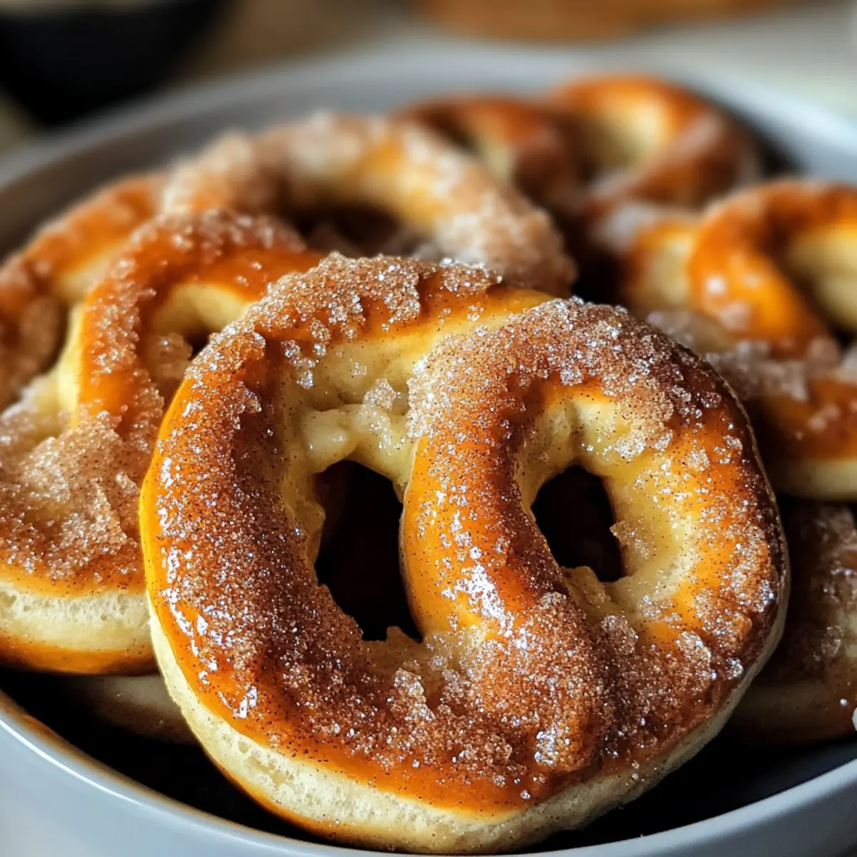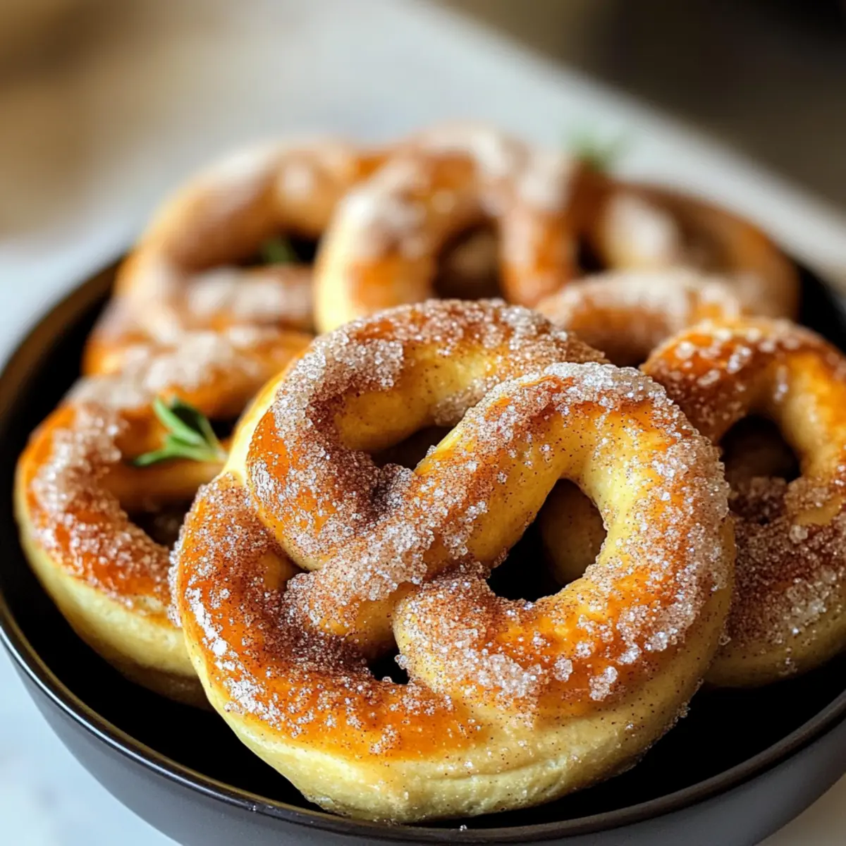 Diese köstlichen weichen Brezeln verzaubern mit ihrem unwiderstehlichen Duft und der süßen Zimt-Zucker-Kombination – ein wahrer Genuss für alle Sinne!