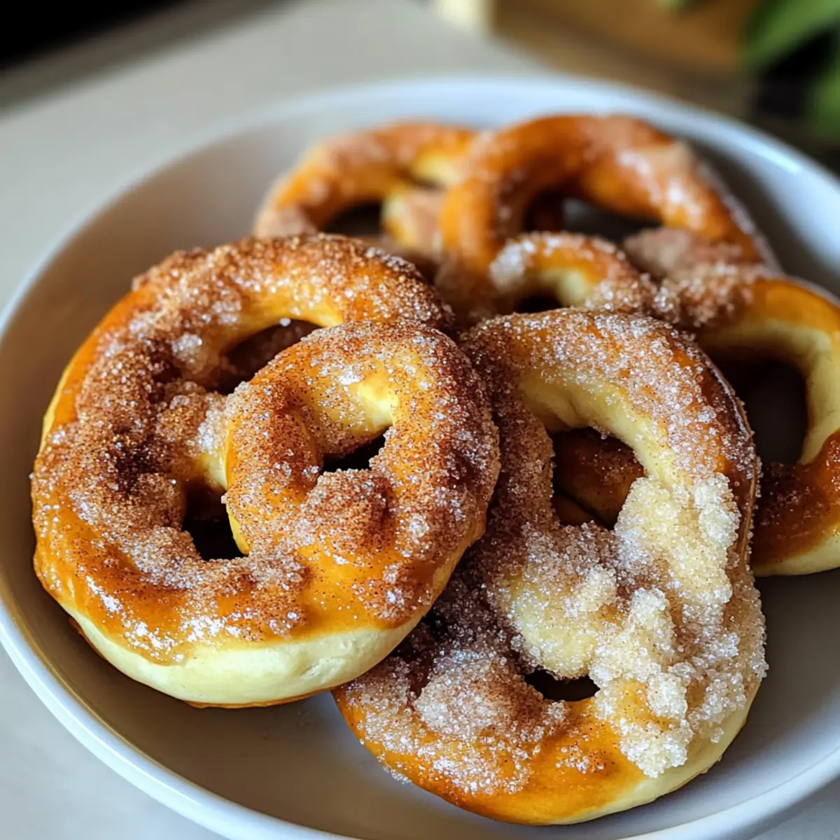 Der Duft von frisch gebackenen Zimtzuckerweichen Brezeln hat eine unvergleichliche Fähigkeit, Erinnerungen an gemütliche Sonntage und erfolgreiche Bäckereien zu wecken. Während ich die weichen, warmen Brezeln aus dem Ofen hole, umweht mich ein süßes Aroma, das über den Raum schwebt und nicht nur den Gaumen, sondern auch das Herz erfreut. Diese selbstgemachten Zimtzuckerbrezeln sind nicht nur eine köstliche Nascherei, sondern auch eine großartige Möglichkeit, ein bisschen Liebe in jede Zutat zu stecken. Mit einfacher Zubereitung zaubert ihr im Handumdrehen einen Snack, der sowohl Groß als auch Klein das Wasser im Mund zusammenlaufen lässt. Ideal für das nächste Treffen mit Freunden oder einfach als süße Belohnung nach einem langen Tag. Neugierig auf die besten Tipps und Tricks zur Zubereitung dieser Leckerei? Warum sind diese Brezeln unwiderstehlich? Einfachheit in Perfektion: Die Zubereitung dieser Zimtzuckerweichen Brezeln erfordert nur grundlegende Backfähigkeiten und sorgt für Erfolgserlebnisse in der Küche. Aromatische Freude: Der warme Duft von frisch gebackenem Zimt und Zucker wird nostalgische Erinnerungen wecken und Eure Sinne erfreuen. Vielfältige Variationen: Diese Brezeln sind nicht nur köstlich pur, sondern lassen sich auch hervorragend mit Schokoladensoße oder einer selbstgemachten Zimtbutter kombinieren. Schnelle Zubereitung: In weniger als zwei Stunden genießt ihr diese fluffigen Leckereien, die perfekt für spontane Snack-Fantasien sind. Familienfreundliches Rezept: Sowohl Kinder als auch Erwachsene werden von diesem süßen Genuss begeistert sein – ideal für gemeinsame Backabende oder Festlichkeiten. Entdeckt mehr über die Zubereitung von Zimtzuckerweichen Brezeln und lasst Euch inspirieren! Zimtzuckerweiche Brezeln Zutaten Für den Teig Aktive Trockenhefe – sorgt für eine luftige, weiche Textur; man kann sie durch Instanthefe im gleichen Maße ersetzen. Warmes Wasser – aktiviert die Hefe und schafft das perfekte Umfeld für den Teig; darauf achten, dass es warm und nicht heiß ist. Zucker – verleiht dem Teig Süße und nährt die Hefe für einen besseren Aufstieg. Allzweckmehl – sorgt für den notwendigen Halt und die Kaukonsistenz des Teigs. Salz – hebt den Geschmack hervor und balanciert die Süße. Ungesalzene Butter, geschmolzen – bringt Reichhaltigkeit und Fördert die Zartheit des Teigs; trägt zu einer goldenen Kruste bei. Backsoda – wird im kochenden Wasser verwendet, um die charakteristische zähe Kruste und die dunkle Farbe zu erhalten. Großes Ei, verquirlt – sorgt für einen glänzenden Abschluss und bindet den Teig. Für die Garnitur Zucker (für den Belag) – sorgt für einen süßen Crunch; verstärkt den Zimtgeschmack. Gemahlener Zimt – gibt einen warmen, würzigen Geschmack, der die Süße ergänzt. Erlebt das Vergnügen, diese Zimtzuckerweichen Brezeln zu backen und verwandelt Eure Küche in eine duftende Wohlfühloase! Step-by-Step Instructions for Zimtzuckerweiche Brezeln Step 1: Hefe aktivieren In einer großen Schüssel vermischt ihr 1 Tasse warmes Wasser, 2 1/4 Teelöffel aktive Trockenhefe und 1 Esslöffel Zucker. Lasst die Mischung für 5 bis 10 Minuten stehen, bis sie schaumig wird. Ihr erkennt, dass die Hefe aktiviert ist, wenn sich an der Oberfläche Blasen bilden. Step 2: Teig vorbereiten Gebt in eine separate Schüssel 3 1/2 Tassen Allzweckmehl und 1 Teelöffel Salz. Mischt beides gut mit einem Holzlöffel, bevor ihr die Hefe-Mischung und 2 Esslöffel geschmolzene Butter hinzufügt. Rührt alles zusammen, bis ein grober Teig entsteht, der sich gut verbinden lässt. Step 3: Teig kneten Streut etwas Mehl auf eure Arbeitsfläche und knetet den Teig dort für 5 bis 7 Minuten, bis er glatt und elastisch ist. Achtet darauf, dass der Teig nicht klebrig bleibt. Er sollte eine schöne, geschmeidige Oberfläche zeigen, wenn ihr fertig seid. Step 4: Teig gehen lassen Formt den Teig zu einer Kugel und legt ihn in eine leicht geölte Schüssel. Deckt die Schüssel mit einem feuchten Küchentuch ab und lasst ihn an einem warmen Ort für 1 bis 1,5 Stunden gehen, bis sich das Volumen verdoppelt hat. Ihr erkennt dies daran, dass der Teig sichtbar aufgegangen ist. Step 5: Ofen vorheizen und Laugenlösung zubereiten Heizt den Ofen auf 190 °C vor und bringt in einem großen Topf 10 Tassen Wasser zum Kochen. Fügt 1/4 Tasse Backsoda hinzu, um die Laugenlösung vorzubereiten. Achtet darauf, dass das Wasser sprudelnd kocht, da dies wichtig für die endgültige Textur der Brezeln ist. Step 6: Brezeln formen Teilt den Teig nach dem Gehen in 8 gleichmäßige Stücke. Rollt jedes Stück zu einem 18-Zoll langen Strang aus und formt damit die klassischen Brezel-Formen. Achte darauf, dass die Enden gut zusammengedrückt werden, damit sich die Brezeln beim Kochen nicht öffnen. Step 7: Brezeln in Lauge tauchen Taucht jede Brezel einzeln für jeweils 30 Sekunden in die heiße Laugenlösung. Dies verleiht den Brezeln die charakteristische zähe Kruste. Nutzt dabei einen Schaumlöffel, um jede Brezel herauszunehmen und lasst sie kurz abtropfen, bevor ihr sie auf das Backblech legt. Step 8: Brezeln bestreichen und bestreuen Bestreicht die nassen Brezeln sofort mit dem verquirlten Ei, um eine glänzende Oberfläche zu erhalten. Streut anschließend großzügig die Zimt-Zucker-Mischung über jede Brezel, sodass sie gut bedeckt sind, um den süßen Geschmack zu intensivieren. Step 9: Brezeln backen Backt die Brezeln im vorgeheizten Ofen für 12 bis 15 Minuten, bis sie goldbraun sind. Achtet darauf, dass der fantastische Duft den Raum erfüllt; die Brezeln sind fertig, wenn sie eine tief goldene Farbe angenommen haben und knusprig aussehen. Step 10: Abkühlen lassen Nehmt die frisch gebackenen Zimtzuckerweichen Brezeln aus dem Ofen und lasst sie auf einem Kuchengitter für einige Minuten abkühlen. Dadurch behalten sie ihre Weichheit und sind bereit zum Genießen. Expertentipps für Zimtzuckerweiche Brezeln Hefe aktivieren: Achten 
