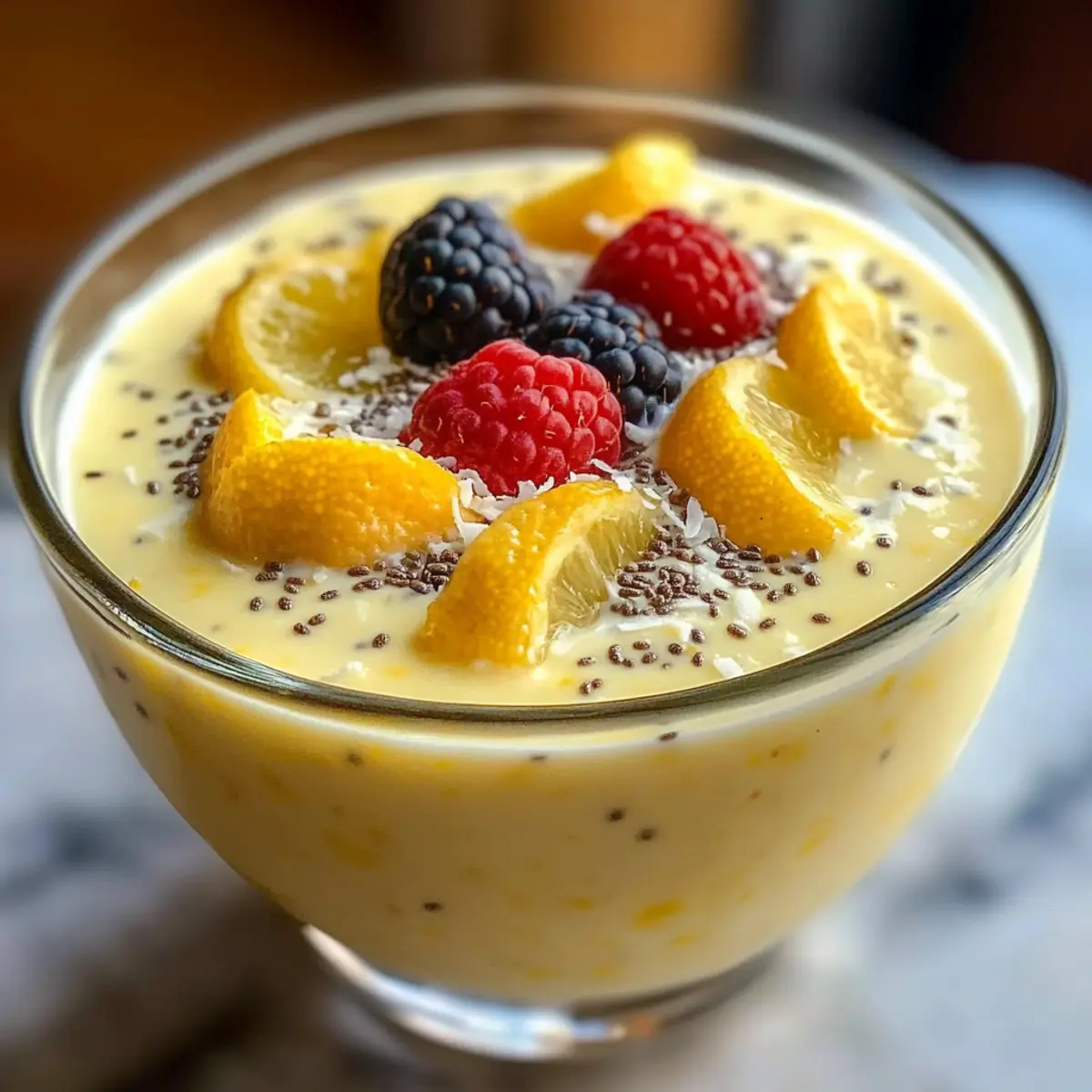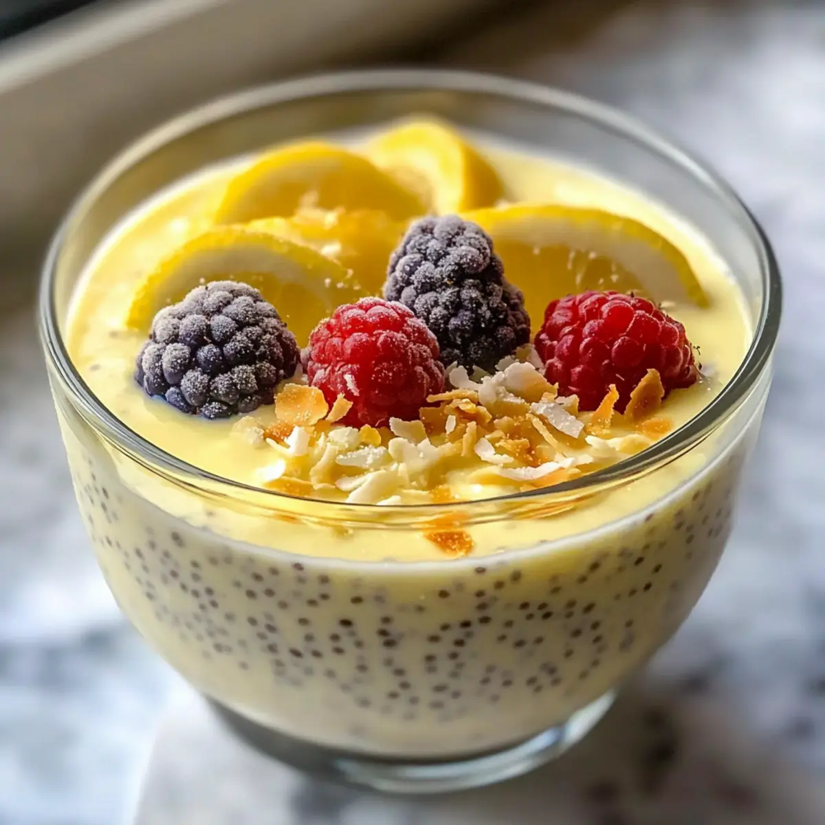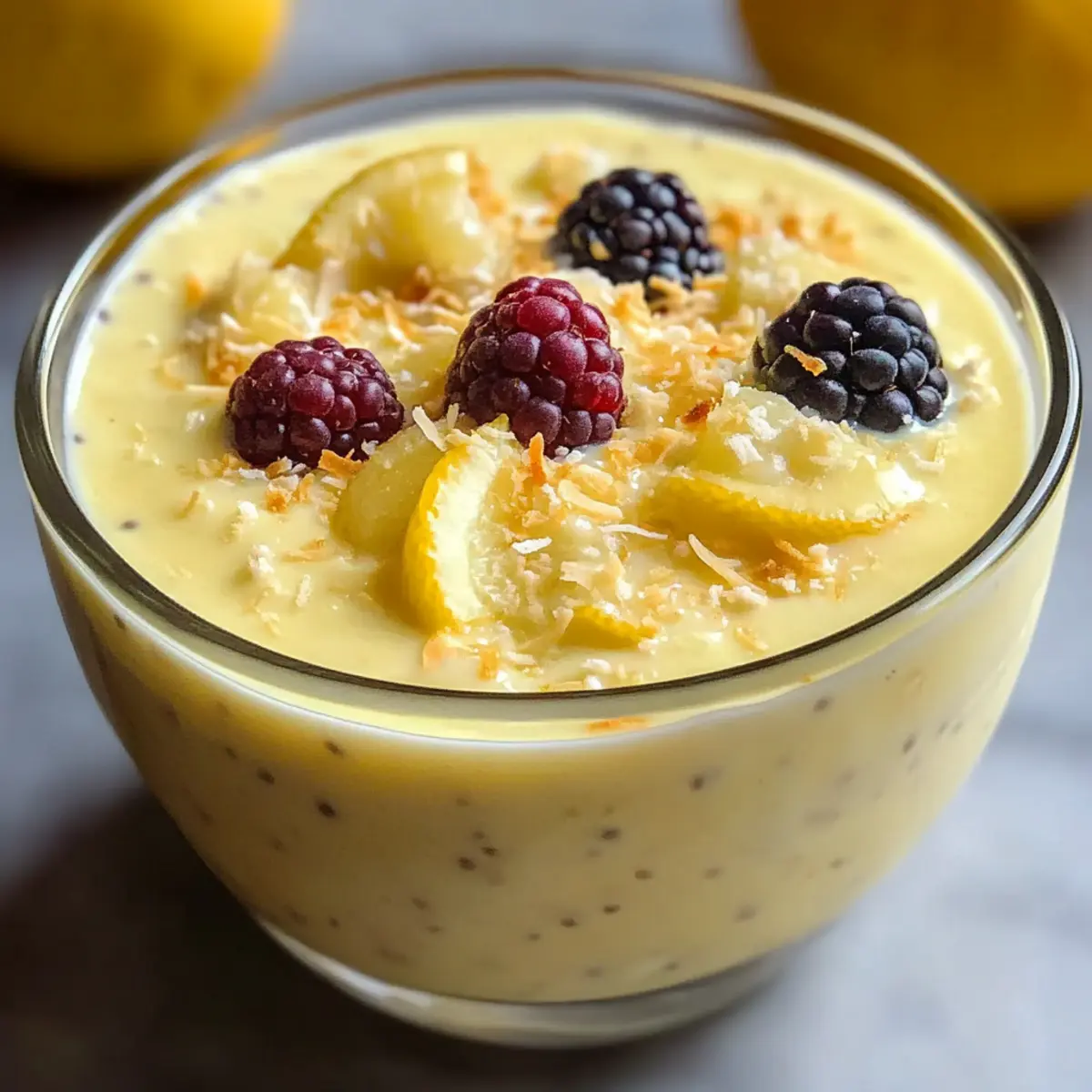 Als ich neulich mit einer Tasse frischem Zitronentee in der Hand auf meinem Balkon saß, überkam mich die Idee für ein erfrischendes Dessert. Da trat der Zitronen-Chia-Pudding mit cremigem Joghurt in mein Leben – ein Rezept, das nicht nur einfach zuzubereiten ist, sondern auch perfekt in meine sommerliche Frühstücksroutine passt. Diese köstliche Mischung aus knusprigen Chia-Samen und dem spritzigen Aroma von Zitrone macht jeden Bissen zu einem Erlebnis. Und das Beste daran? Es ist ein No-Cook-Rezept, das in wenigen Minuten vorbereitet werden kann, ideal für alle, die sich von Fast Food abwenden möchten. Die cremige Konsistenz und die harmonische Balance von Süße und Säure werden jeden Gaumen begeistern. Neugierig, wie Sie diese erfrischende Delikatesse zubereiten können? Warum ist Zitronen-Chia-Pudding so besonders? Einfachheit: Dieses Rezept ist kinderleicht und benötigt nur grundlegende Zutaten, die schnell miteinander vermischt werden. Erfrischender Geschmack: Die Kombination aus frischer Zitrone und cremigem Joghurt sorgt für einen spritzigen, köstlichen Genuss, der perfekt für den Sommer ist. Gesunde Zutaten: Vollgepackt mit Omega-3-Fettsäuren und Protein ist dieser Pudding nicht nur lecker, sondern auch gesund. Zeitersparnis: Mit einer Vorbereitungszeit von nur wenigen Minuten und der Möglichkeit, ihn im Voraus zuzubereiten, passt er ideal zu einem hektischen Alltag. Vielseitigkeit: Sie können ihn mit verschiedenen Toppings wie Früchten oder Nüssen anpassen – ideal für jeden Geschmack! Beliebtheit: Dieser zitronige Snack wird Ihre Familie und Freunde begeistern und sich perfekt für gesellige Anlässe eignen. Zutaten für Zitronen-Chia-Pudding • Für den Pudding Chia-Samen – Sie sorgen für die gewünschte Textur und Dicke; gut umrühren, um Klumpen zu vermeiden. Mandelmilch – Macht den Pudding cremig; kann durch Kokosmilch ersetzt werden für einen reichhaltigeren Geschmack. Griechischer Joghurt – Verleiht dem Pudding eine angenehme Cremigkeit und leichten Säuregeschmack; für eine vegane Option einfach mit pflanzlichem Joghurt substituieren. Frischer Zitronensaft – Essenziell für die spritzige Frische; vermeiden Sie Flasche-Säfte für das beste Aroma. Zitronenzesten – Intensiviert das Zitronenaroma; verwenden Sie Bio-Zitronen für den besten Duft. Ahornsirup – Süßt den Pudding auf natürliche Weise; andere Süßstoffe wie Honig oder Agave können ebenfalls verwendet werden. Vanilleextrakt – Fügt dem Geschmack Tiefe hinzu; sollte nicht weggelassen werden, um das volle Aroma zu genießen. • Toppings (optional) Frisches Obst – Perfekt für zusätzlichen Geschmack und Textur, probieren Sie Beeren oder Zitrusfrüchte! Granola – Für einen zusätzlichen Crunch; eignet sich hervorragend als Garnitur. Kokosraspeln – Fügt einen exotischen Touch und mehr Geschmack hinzu; können geröstet werden für mehr Aroma. Bereiten Sie sich darauf vor, diese köstliche Delikatesse auszuprobieren – das Zitronen-Chia-Pudding mit cremigem Joghurt Rezept wird Sie begeistern! Schritt-für-Schritt-Anleitung für Zitronen-Chia-Pudding mit cremigem Joghurt Rezept Step 1: Zutaten vorbereiten Messen Sie alle Zutaten sorgfältig ab und legen Sie sie bereit. Sie benötigen Chia-Samen, Mandelmilch, griechischen Joghurt, frischen Zitronensaft, Zitronenzesten, Ahornsirup und Vanilleextrakt. Stellen Sie sicher, dass die Zutaten bei Zimmertemperatur sind, um eine bessere Mischung zu gewährleisten. Step 2: Mischung herstellen Geben Sie in eine große Rührschüssel die Chia-Samen, Mandelmilch, griechischen Joghurt, frisch gepressten Zitronensaft, Zitronenzesten, Ahornsirup und den Vanilleextrakt. Rühren Sie alles gründlich um, bis eine homogene Masse entsteht. Achten Sie darauf, die Chia-Samen gleichmäßig zu verteilen, um Klumpenbildung zu verhindern. Step 3: Kühlen und eindicken lassen Decken Sie die Schüssel mit Frischhaltefolie ab und stellen Sie sie für mindestens 4 Stunden in den Kühlschrank, am besten über Nacht. Während dieser Zeit quellen die Chia-Samen und der Pudding wird dick und cremig. Überprüfen Sie nach der Kühlzeit, ob eine gelartige Konsistenz erreicht wurde. Step 4: Finalisieren des Puddings Nachdem der Pudding gut durchgekühlt ist, nehmen Sie die Schüssel aus dem Kühlschrank. Geben Sie den Pudding erneut gut durch, um sicherzustellen, dass alle Zutaten gut verteilt sind und die gewünschte Konsistenz erreicht wurde. Der Zitronen-Chia-Pudding sollte jetzt eine schöne, cremige Textur haben. Step 5: Anrichten und garnieren Verteilen Sie den fertigen Zitronen-Chia-Pudding in kleine Gläser oder Schalen. Dekorieren Sie die Oberflächen nach Belieben mit frischem Obst, Granola oder Kokosraspeln. Dies verleiht Ihrem Pudding nicht nur zusätzlichen Geschmack, sondern sorgt auch für einen ansprechenden Look. Step 6: Servieren und genießen Servieren Sie den Zitronen-Chia-Pudding direkt nach dem Anrichten, ideal für ein erfrischendes Frühstück oder als leichten Snack. Dieser Pudding ist perfekt für jedes Alter und wird Ihre Familie und Freunde verwöhnen. Guten Appetit! Zitronen-Chia-Pudding Rezept Variationen Lassen Sie Ihrer Kreativität freien Lauf! Es gibt unzählige Möglichkeiten, diesen köstlichen Pudding nach Ihrem Geschmack anzupassen. Vegane Option: Ersetzen Sie griechischen Joghurt durch cremige Kokosnusscreme für einen reichhaltigen, pflanzlichen Genuss. Süße Anpassungen: Experimentieren Sie mit verschiedenen Süßungsmitteln wie Honig oder Agavensirup, um die Süße nach Ihrem Belieben einzustellen. Fruchtige Ergänzungen: Toppen Sie den Pudding mit frischen Beeren oder Granatapfelkernen für eine fruchtige Frische und zusätzlichen Crunch. Gewürz-Boost: Fügen Sie eine Prise Zimt oder Muskatnuss hinzu, um den Geschmack spannend zu variieren und für eine warme Note zu sorgen. Nussiger Crunch: Mischen Sie geröstete Mandeln oder Walnüsse unter den Pudding für einen köstlichen Textur-Kontrast und gesunde Fette