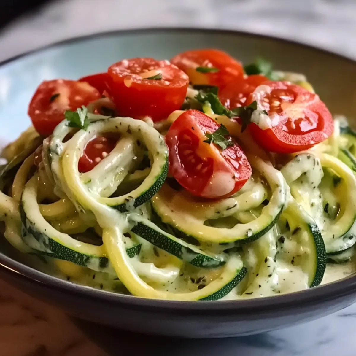 Es gibt Momente, in denen nur etwas Leichtes und Gesundes auf den Tisch kommt, und genau dann erlebe ich die Magie von Zucchini-Spaghetti mit Frischkäsesoße. Diese kreative Variante von Pasta setzt auf frische Zucchini, die ich mit einem Spiralizer in appetitliche „Zoodles“ verwandele. In nur 15 Minuten zaubere ich ein Gericht, das nicht nur meinen Gaumen verwöhnt, sondern auch meinen gesunden Lebensstil unterstützt. Die Kombination aus cremiger Frischkäse-Sauce und knackigen Zucchini-Streifen bringt nicht nur Farbe auf meinen Teller, sondern macht auch in den Abendstunden Lust auf mehr. Perfekt für ein schnelles Mittagessen oder ein leichtes Abendessen, wird dieses Rezept schnell zum neuen Favoriten in meiner Küche. Neugierig geworden? Lass uns gemeinsam in die Zubereitung eintauchen! Warum ist dieses Rezept so besonders? Gesundheit und Geschmack: Dieses Gericht vereint eine gesunde Mahlzeit mit einem unvergleichlichen Geschmack – Zucchini-Spaghetti sind nicht nur kalorienarm, sondern auch voller Nährstoffe! Schnelle Zubereitung: In nur 15 Minuten auf dem Tisch, ideal für Abendessen nach einem langen Tag. Vielseitigkeit: Du kannst es leicht anpassen, indem du zusätzliches Gemüse oder Proteine wie Hühnchen oder Tofu hinzufügst. Cremiger Genuss: Die Frischkäse-Sauce verwandelt die Zoodles in ein cremiges Vergnügen, das dich immer wieder nach mehr verlangen lässt. Einfach und schnell: Keine komplizierten Techniken nötig – perfekt für Kochanfänger und schnelle Rezepte. Diese Zucchini-Spaghetti mit Frischkäsesoße sind eine beliebte Wahl, die garantiert deine Familie und Freunde begeistert. Zucchini-Spaghetti mit Frischkäsesoße Zutaten • Für alle, die auf der Suche nach einer gesunden, schnellen Mahlzeit sind, sind diese Zucchini-Spaghetti mit Frischkäsesoße genau das richtige Rezept! Für die Zoodles Zucchini – Das Hauptzutat, die als kalorienarme Pasta-Alternative dient. Du kannst sie auch durch Möhren oder Kürbis ersetzen. Für die Soße Frischkäse – Sorgt für eine reiche, cremige Textur der Soße. Verwende griechischen Joghurt für eine leichtere Variante. Tomaten – Gibt Frische und Säure, um den Geschmack zu intensivieren. Alternativ kannst du auch passierte oder getrocknete Tomaten verwenden. Zitronensaft – Balanciert die Cremigkeit der Soße mit einer zusätzlichen Säure. Versuch es mit Apfelessig für eine säuerliche Note. Rapsöl – Zum Braten der Zucchini, um eine goldene Textur zu erzielen. Olivenöl oder ein anderes Pflanzenöl funktionieren ebenfalls gut. Schritt-für-Schritt-Anleitung für Zucchini-Spaghetti mit Frischkäsesoße Step 1: Zucchini vorbereiten Beginne damit, die Zucchini gründlich zu waschen und die Enden abzuschneiden. Verwende einen Spiralizer, um die Zucchini in spaghettiähnliche Stränge zu schneiden. Dies sollte etwa 5 Minuten dauern. Du erhältst dabei luftige „Zoodles“, die die Grundlage für deine Zucchini-Spaghetti mit Frischkäsesoße bilden. Step 2: Zucchini anbraten Erhitze in einer großen Pfanne bei mittlerer Hitze 1-2 Esslöffel Rapsöl. Gib die Zucchini-Spaghetti in die Pfanne und brate sie für 3-4 Minuten an, bis sie zart und leicht goldbraun sind. Achte darauf, sie nicht zu übergaren, damit sie ihre Form behalten und al dente bleiben. Step 3: Frischkäse-Mischung zubereiten Während die Zucchini brät, nehme eine Schüssel und vermische den Frischkäse mit dem Zitronensaft. Rühre die Mischung kräftig mit einem Löffel, bis sie schön cremig und gleichmäßig ist. Diese cremige Soße wird später mit den Zoodles kombiniert, um die Zucchini-Spaghetti mit Frischkäsesoße zu vollenden. Step 4: Sauce hinzufügen Sobald die Zucchini leicht gebräunt sind, füge die gewürfelten Tomaten zur Pfanne hinzu. Gieße dann die Frischkäsemischung über die Zucchini. Rühre alles gut um, bis die Soße gleichmäßig verteilt ist und die Zoodles gut umhüllt sind. Lasse alles für weitere 2 Minuten erhitzen. Step 5: Anrichten und servieren Wenn die Zucchini-Spaghetti mit Frischkäsesoße gut vermischt und warm sind, nimm die Pfanne vom Herd. Serviere die Zoodles sofort auf Tellern und genieße diese gesunde und leckere Mahlzeit. Du kannst sie nach Belieben mit frischen Kräutern garnieren, um den Geschmack abzurunden. Expert Tips für Zucchini-Spaghetti mit Frischkäsesoße Zucchini richtig schneiden: Achte darauf, die Zucchini gleichmäßig zu spiralieren, um eine einheitliche Garzeit zu gewährleisten und deine Zoodles perfekt al dente zu genießen. Einfache Anpassung: Experimentiere mit dieser Zucchini-Spaghetti mit Frischkäsesoße, indem du zusätzliches Gemüse wie Paprika oder Spinat hinzufügst, um den Nährstoffgehalt zu erhöhen und neue Geschmäcker zu entdecken. Cremige Soße: Lass den Frischkäse vorher etwas erwärmen, damit er sich beim Mischen besser auflöst und du eine glatte, klumpenfreie Sauce erhältst – das erhöht den Genuss. Tomatenwahl: Verwende frische Tomaten für eine hellere Note, aber passierte oder getrocknete Tomaten sind ebenfalls schmackhafte Alternativen, besonders für intensivere Aromen. Überkochen vermeiden: Überwache die Zucchini während des Anbratens sorgfältig, um zu verhindern, dass sie matschig werden. Sie sollten knackig bleiben, um die perfekte Textur zu erhalten. Meal Prep für Zucchini-Spaghetti mit Frischkäsesoße Diese Zucchini-Spaghetti mit Frischkäsesoße sind perfekt für die Vorabzubereitung, um dir unter der Woche Zeit zu sparen! Du kannst die Zucchini-Spaghetti (Zoodles) bis zu 24 Stunden im Voraus spiralisieren und in einem luftdichten Behälter im Kühlschrank aufbewahren, um die Frische zu bewahren. Die Frischkäse-Mischung lässt sich ebenfalls vorbereiten und bleibt im Kühlschrank für etwa 3 Tage gut. Achte darauf, die Zucchini nicht zu lange zu braten, um die Qualität zu erhalten; ein kurzes Anbraten für 3-4 Minuten reicht aus. Wenn du bereit bist zu servieren, füge die gewürfelten Tomaten und die Frischkäse-Mischung hinzu, erh